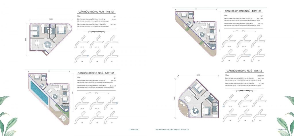 - Căn hộ 3 phòng ngủ (Sky Villa): Diện tích bề thế từ 260 – 335,3 m², tích hợp các tiện ích đặc quyền như hồ bơi riêng hoặc sân vườn trên không, khẳng định vị thế độc tôn của chủ nhân sở hữu.