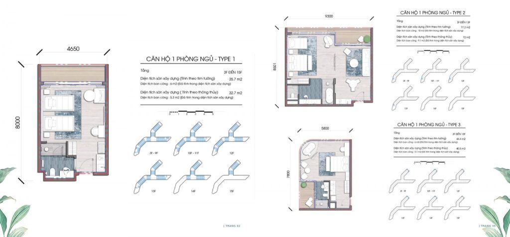 - Căn hộ 1 phòng ngủ (Studio & 1PN): Diện tích từ 38,7 – 77,2 m², giải pháp hoàn hảo cho mục tiêu đầu tư bất động sản dòng tiền thông qua hình thức cho thuê ngắn ngày trên các nền tảng số.